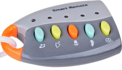 Šareni gumbi reproduciraju vesele melodije i zvukove automobila – zvono, klakson, paljenje motora te zaključavanje/otključavanje. Djeca uče uzročno-posljedičnu vezu na zabavan način.