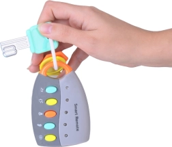 Djeca vole oponašati odrasle – i s ovim interaktivnim ključevima uživat će u mnogo sigurne i poticajne zabave. Daljinski upravljač s obojenim gumbima reproducira vesele melodije i autentične zvukove automobila, koje upotpunjuju trepćuća svjetla. Igračka je lagana, ugodna za držanje i jednostavna za čišćenje.