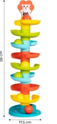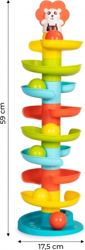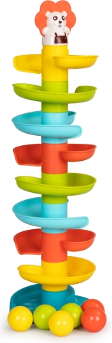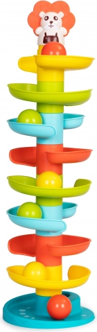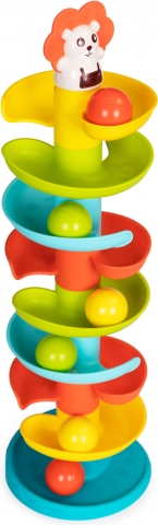 Kula s uvijenim toboganom za loptice sjajna je igračka za najmlađu djecu koja će s veseljem promatrati i loviti loptice. Njihovo korištenje razvijat će motoričke i manualne vještine, zahvaljujući čemu spajate zanimljivu zabavu s održivim razvojem djeteta.