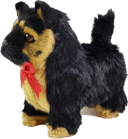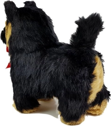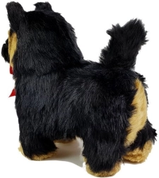 Preslatki interaktivni njemački ovčar razveselit će svako dijete. Na dodir se aktivira, laje, miče glavicom i repom, a pritiskom sa strane korača naprijed uz veselu melodiju. Mekano plišano krzno u crno‑smeđoj boji i crvena mašna daju realističan izgled. Sjajan način za učenje brige i odgovornosti kroz igru.