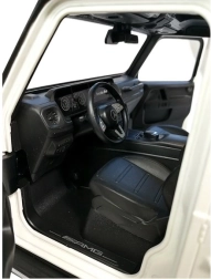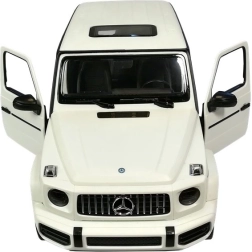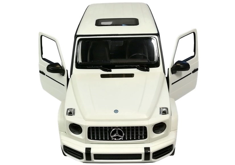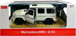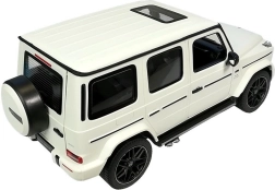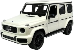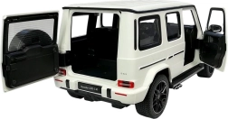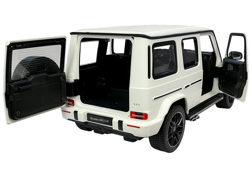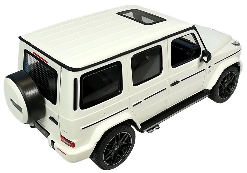 Mercedes G63 na daljinsko upravljanje u bijeloj boji autentična je replika u mjerilu 1:14. Vozilo se kreće naprijed, natrag, skreće i koči pomoću daljinskog upravljača. Zahvaljujući terenskom karakteru može se koristiti u interijeru i eksterijeru. Svjetla na vozilu aktiviraju se tijekom vožnje. Vrata se otvaraju ručno, a unutrašnjost i podvozje dizajnirani su s velikom pažnjom kako bi odgovarali originalnom vozilu. Daljinski upravljani Mercedes upravlja se radio daljinskim upravljačem i postiže brzinu do 7 kilometara na sat. Daljinski upravljač ima domet od nekoliko desetaka metara i, za razliku od infracrvenih upravljača, može se bez problema koristiti vani na jakom suncu.