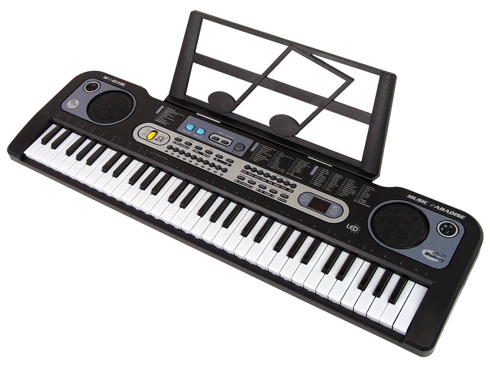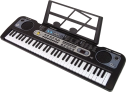 Dio pakiranja je i mikrofon (cca 4 × 12 × 3 cm) s kojim mali umjetnici mogu zapjevati svoje omiljene pjesme. Sa stalakom za note sviranje je pregledno i udobno – bilo prema predlošcima ili pri stvaranju vlastitih skladbi. Izdržljivo plastično kućište osigurava dugotrajnost i sigurnu igru.