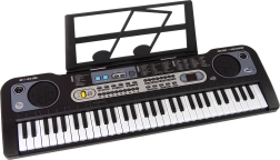 Otkrijte zabavan svijet glazbe s dječjim elektroničkim klavijaturom u elegantnoj crnoj boji i priloženim mikrofonom. Osvijetljene tipke, mogućnost podešavanja glasnoće i tempa te bogata paleta zvukova i ritmova čine ga idealnim izborom za male početnike glazbenike. U paketu su stalak za note, kabel i upute – sve za jednostavne prve korake u muziciranju.