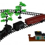 Ova detaljno izrađena željeznička staza oduševit će male i velike zaljubljenike u željeznicu. Lokomotiva s realističnim dimom iz dimnjaka i svjetlima vozi po stabilnim tračnicama u obliku elipse, nadopunjenima stanicom i stablima za još autentičniji ugođaj. Jednostavne klik-spojeve tračnica mogu savladati i djeca, a kvalitetna plastika osigurava dug vijek trajanja.