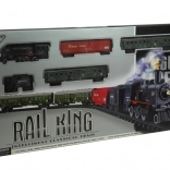 Sadržaj: lokomotiva, teretni vagon, tri manja vagona, stanica, dva stabla, tračnice i dozator za vodu za efekt dima. Dovoljno je umetnuti 4 AA baterije (nisu uključene) u teretni vagon, povezati s lokomotivom i nakon kratkog zagrijavanja grijaćeg elementa krenuti na prugu.
