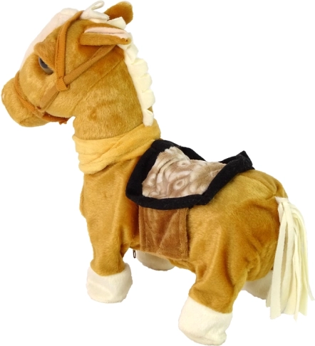 Plišani smeđi konjić sa svijetlom grivom idealan je pratilac za svako dijete koje želi životinjskog prijatelja. Konjić je opremljen interaktivnim funkcijama, koje uključuju kretanje, glazbu i zvučne efekte. Nakon umetanja baterija dovoljno je pritisnuti gumb kako bi konjić počeo svirati i kretati se.