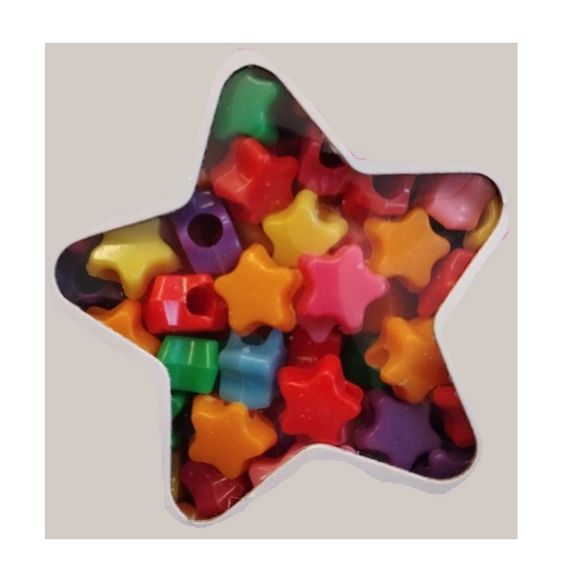 Kreativni set šarenih perlica u obliku zvjezdica s uzicom duljine 1 m za lako nizanje. Izradite vlastite narukvice i ogrlice za sebe i prijatelje. Perlice se lako nižu i možete ih kombinirati s drugim setovima iz kolekcije (12 vrsta).