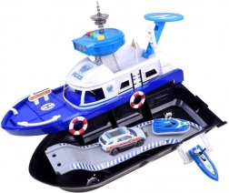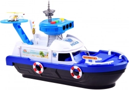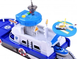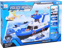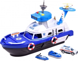 Ovaj detaljno izrađen policijski brod u bijelo-plavoj kombinaciji spreman je za svaku misiju – na vodi, na kopnu i u zraku. Na palubi se nalazi heliodrom s helikopterom, kontrolni toranj sa svjetlosnim i zvučnim efektima te unutarnji prostor za pohranu za prijevoz vozila. Otvoriv kokpit s kormilom i figuricom kapetana pojačava realizam igre.