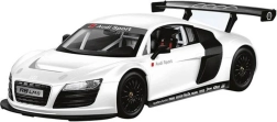 Uživajte u brzoj i glatkoj vožnji s licenciranim modelom AUDI R8 LMS u elegantnoj bijeloj boji. Tamno tonirana stakla, detaljna karoserija i izraženo krilo naglašavaju autentičan izgled trkaćeg vozila. Gumene gume brinu za sigurnost na glatkim i blago neravnim podlogama.