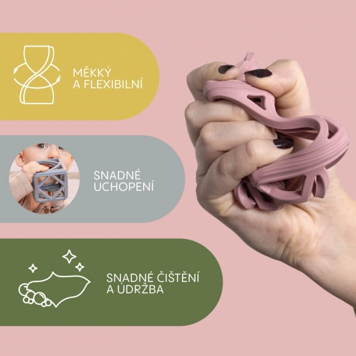 Pomozite svojoj bebi da lakše prebrodi zahtjevno razdoblje nicanja zubića uz silikonsku grickalicu Square. Njezin jedinstveni geometrijski oblik savršeno pristaje malim ručicama i nudi učinkovitu masažu desni koja ublažava nelagodu tijekom nicanja.