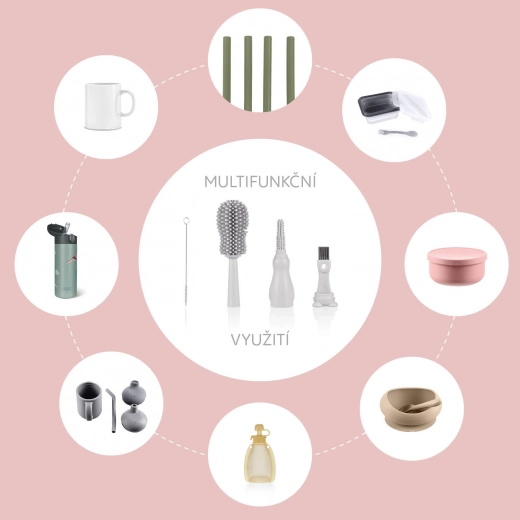 • Tri različite površine za čišćenje za svestranu upotrebu (bočice, dude i slamke)