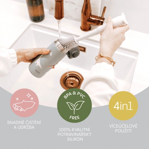 Otkrijte svestranog pomoćnika za lako i temeljito čišćenje svih dječjih bočica bez bojazni od ogrebotina. Ova inovativna silikonska četka 3u1 nudi različite površine za čišćenje koje će vam pomoći postići savršenu higijenu i na teško dostupnim mjestima.