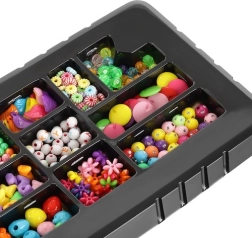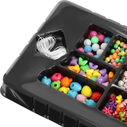 Ovaj jedinstveni set za izradu nakita idealan je izbor za djecu koja žele razvijati svoju kreativnost i istovremeno uživati u satima zabave. Sadrži 11 vrsta perlica u različitim oblicima i bojama, zajedno s elastičnom vrpcom, što omogućuje mnogo mogućnosti za izradu narukvica i ogrlica.