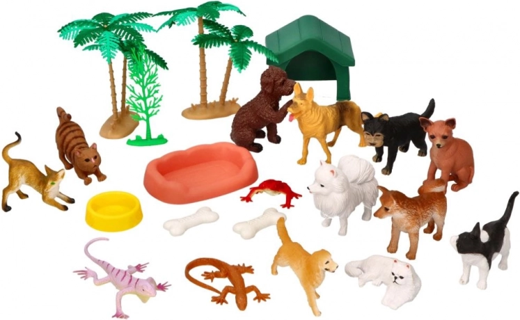 S ovim setom dobivate širok izbor figurica kućnih životinja i njihova pribora, poput kućica za pse, posuda za vodu i kostiju.