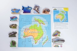Uronite u fascinantni svijet australske faune s drvenim puzzlama koje sadrže 16 dijelova karte i 10 samostojećih životinja. Puzzle su izrađene od kvalitetnog MDF materijala, što osigurava njihovu dugotrajnost i sigurnost za djecu. Životinje su realistično prikazane, što potiče maštu i vizualno razumijevanje.
