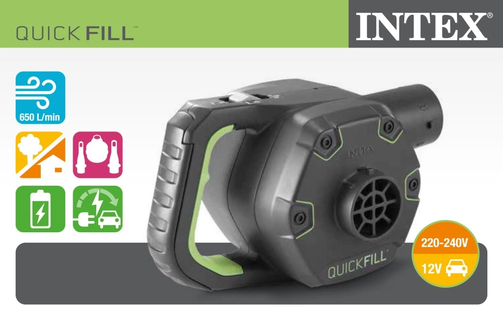 U pakiranju se nalaze 3 izmjenjiva nastavka koja odgovaraju većini standardnih ventila. Pumpa omogućuje brzo napuhavanje i ispuhivanje, štedi vrijeme i trud te olakšava rukovanje glomaznim predmetima.