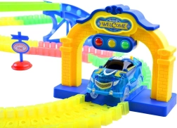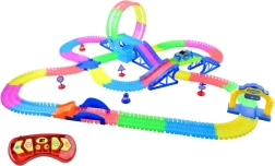 Uživajte u akcijskoj zabavi s fluorescentnom autodrumom duljine 6,56 m koju djeca lako mogu sastaviti u petlje, mostove i zavoje. Automobil s daljinskim upravljanjem, svjetlosnim i zvučnim efektima te automatskim semaforom donosi realističan i siguran trening prometnih situacija i beskrajne mogućnosti kreativne igre.