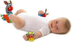 Čarapice i narukvice sa zvečkom potiču na micanje nožicama i ručicama, čime prirodno razvijaju motoriku i koordinaciju pokreta.