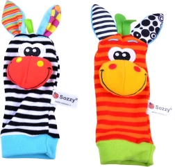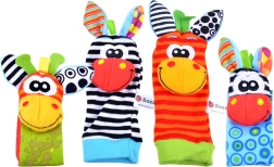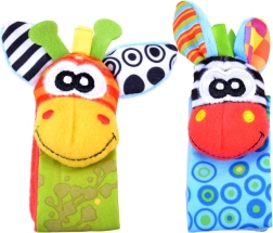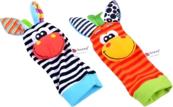 Čarapice zveckaju i istovremeno griju, narukvice za zapešće lako se pričvršćuju zahvaljujući čičku i dobro stoje i pri razigranoj igri. Izvezeni likovi životinjica su potpuno sigurni bez sitnih dijelova. Igračke se mogu prati, pa ih je lako održavati čistima – idealan izbor za svakodnevnu igru i kao poklon za novorođenče.
