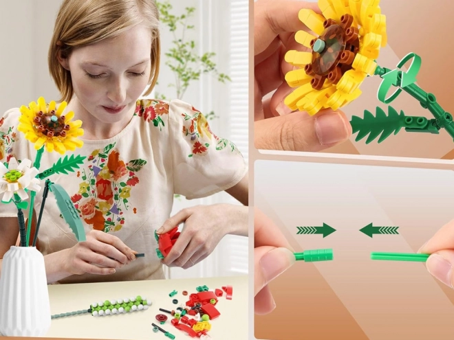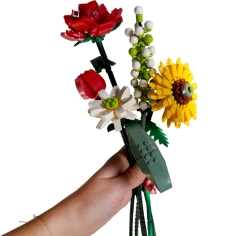 Ovaj kreativni konstrukcijski set cvijeća donosi sve što trebate za izradu dojmljivog buketa duljine približno 31,5 cm. Dijelovi u živim bojama i promišljenim oblicima omogućuju slaganje raznih vrsta cvjetova i listova te stvaranje jedinstvene dekoracije za vazu, stol ili policu.