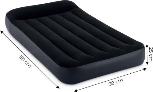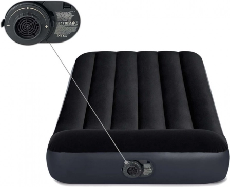 Praktičan nafukovni madrac INTEX za jednu osobu nudi dimenzije 191 × 99 × 25 cm, integriranu električnu pumpu za brzo napuhavanje i ispuhavanje, ugodnu baršunastu (velur) površinu i izdržljivu konstrukciju Fiber-Tech/Dura-Beam. Idealan za dom i putovanja, s maksimalnom nosivošću 136 kg i profiliranim naslonom za glavu za veću udobnost.