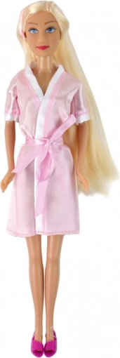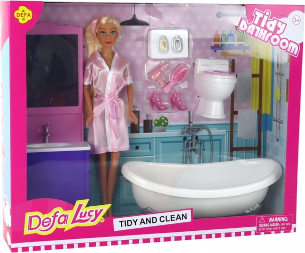 Stilizirana lutka s dugom plavom kosom u ružičastom ogrtaču razveselit će svako dijete. U pakiranju ćete pronaći kadu, WC školjku, umivaonik sa zrcalom i praktične dodatke za uređivanje kose. Sjajna igračka za kreativnu igru, razvoj mašte i fine motorike, prikladna za djecu od 3 godine.