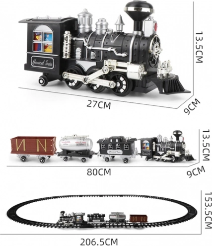 Ukupna duljina staze prelazi 206 cm, što osigurava veličanstvenu zabavu. Interaktivne funkcije poput svjetla i zvukova dodaju realističan osjećaj kao iz stvarnog vlaka. Kontrolna jedinica omogućava kretanje naprijed i nazad, ubrzanje i korištenje zvučnog signala.
