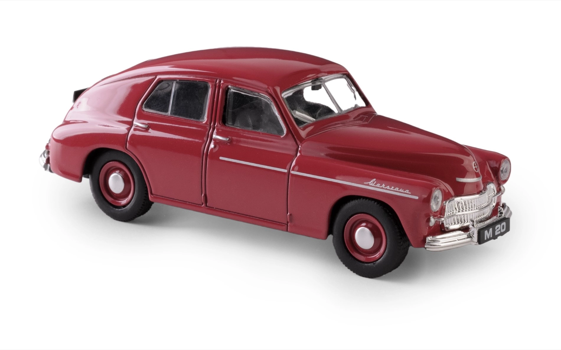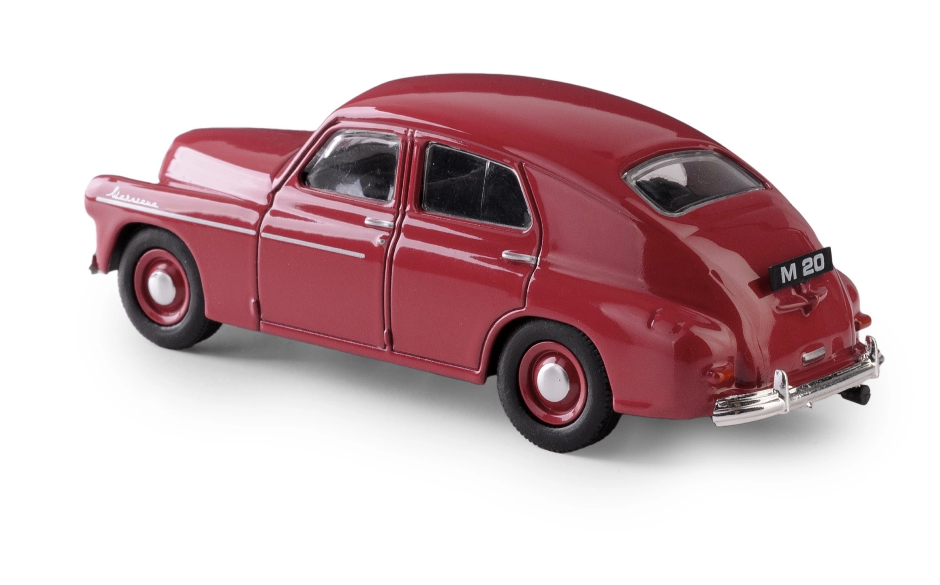 Warszawa M20 bio je prvi serijski proizvedeni osobni automobil u Poljskoj nakon Drugog svjetskog rata, a od 1954. izvozio se u inozemstvo. Ovaj realistični model donosi autentičnu atmosferu klasičnog sedana – uključujući precizne linije karoserije, kromirane lajsne i čisto ostakljenje prozora.