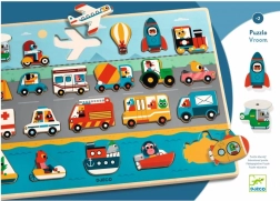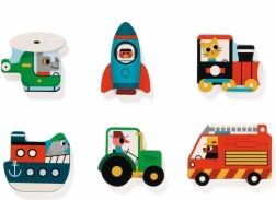 Otkrijte šarenu drvenu slagalicu s motivom prijevoznih sredstava od DJECO, koja potiče finu motoriku, koordinaciju oko–ruka i logičko razmišljanje. Dijelovi s vozilima uklapaju se u urezane okvire, imaju obojene obrube za lakšu orijentaciju i mogu se koristiti i kao samostalne figurice za kreativnu igru.