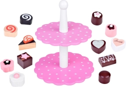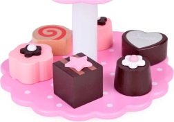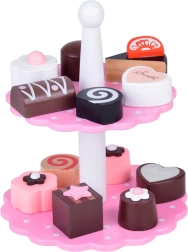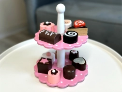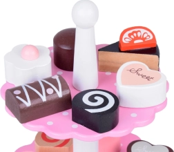 Sadrži razne drvene kolače i dvokatni stalak u nježnim pastelnim bojama koji prizivaju svijet slastica. Zahvaljujući ovom setu, svaka će se igra pretvoriti u sjajnu, ukusnu avanturu.