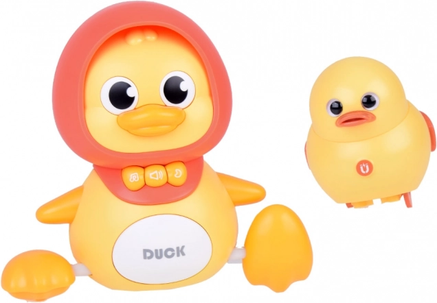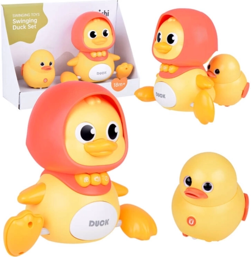 Dio kompleta su dva načina igre – dinamične melodije za aktivnu igru i utišana uspavanka (tipka „mjesec“) za umirenje prije spavanja. Zahvaljujući magnetskom spajanju veliku i malu patkicu možete klikom povezati i stvoriti presladak vlakić za kojim se djeca rado pužu ili gmizu.