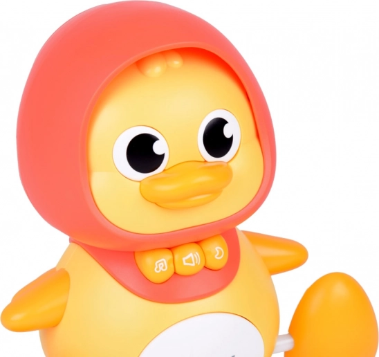 Velika patka kreće se naprijed po ravnoj podlozi i ritmično se njiše u stranu – idealno za prirodno poticanje na puzanje i gmizanje.
