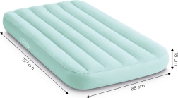 Nafukavajući madrac INTEX dimenzija 157x88x18 cm dizajniran je za udoban san jedne osobe. Djeca će ga obožavati zbog njegovog ugodnog plavog dizajna i materijala od vodootpornog velura koji je ugodan na dodir. Madrac je opremljen tehnologijama Dura-Beam i Fiber-Tech koje osiguravaju čvrstoću i pravilan raspored težine za zdrav san.
