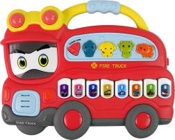 Igračka je precizno izrađena od kvalitetnih materijala u živim bojama s motivom vatrogasnog vozila koji poziva na igru. Svjetleći elementi privlače djetetovu pažnju, a dodatni zvukovi omogućuju mu upoznavanje svijeta.