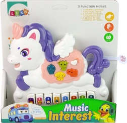 Interaktivno piano Jednorog pažljivo je izrađeno od kvalitetnih materijala i nudi razne funkcije koje će zainteresirati svako dijete. Zahvaljujući prekrasnom dizajnu jednoroga s ljubičastom grivom i svjetlećim elementima privlači pažnju i motivira za istraživanje svijeta zvukova.