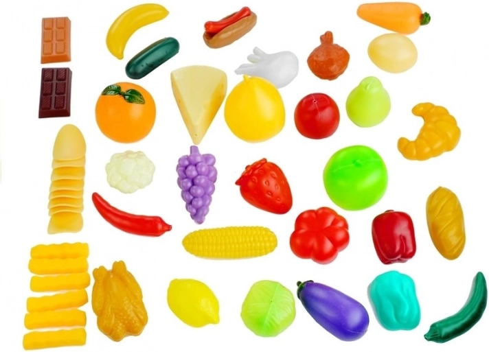 Ova igračka prikladna je za djecu od 3 godine i sadrži ukupno 50 komada: voće, povrće, sireve i klasična jela poput pizze, hot-doga ili čipsa. Djeca se mogu veseliti satima zabave s ovim realističnim setom za igru.