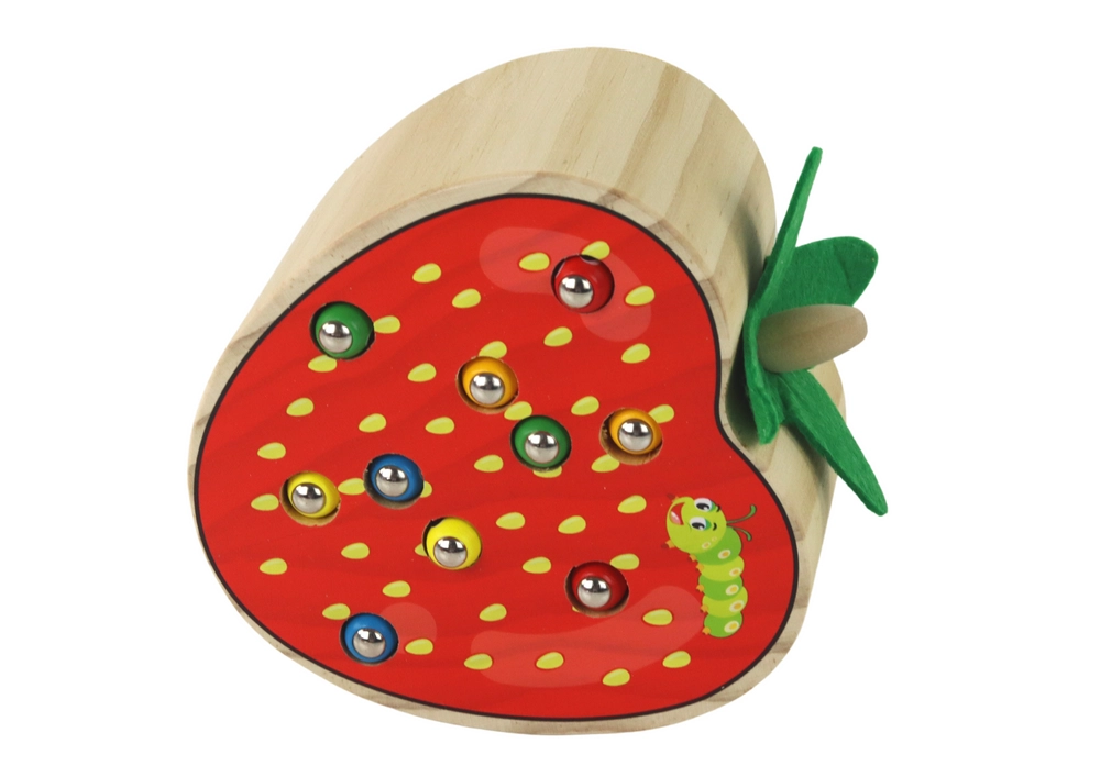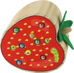 Igra se fokusira na zanimljiv zadatak hvatanja simpatičnih crvića drvenim štapićem s magnetom, koji su domišljato skriveni u slikovitim otvorima u drvenoj jagodi. Zadatak djeteta je zatim precizno ih vratiti natrag. To je izazov koji ne samo da razvija koncentraciju, već i poboljšava manu-alnu spretnost, koordinaciju pokreta i motoriku.