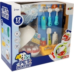 Dio seta je i svjetleće stomatološko zrcalo (svjetlo se aktivira pritiskom na gumb), pincete, dvije “bušilice”, četkica za zube i “pasta”. Djeca mogu vaditi “bolesne” zubiće psića i isprobati liječenje karijesa – u otvor se može umetnuti kartica bombona/čokolade, a zatim je pincetom pažljivo izvaditi bez potrebe za vađenjem cijelog zuba.