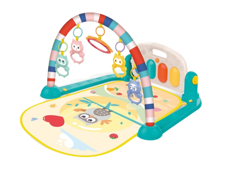 Šarena i mekana podloga s razigranim motivom sovice za ugodnu i sigurnu igru. Dječji klavir u donjem dijelu podloge koji na dodir djeteta reagira veselim zvukovima i melodijama, stimulira sluh i potiče fizičku aktivnost.