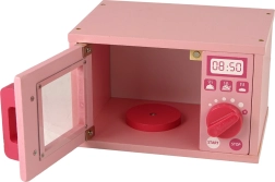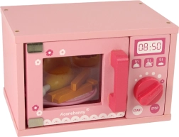 Preslatka ružičasta drvena mikrovalna za djecu izvrstan je dodatak dječjoj kuhinjici. Ima vrata s magnetnim zatvaranjem, okretni kotačić s klikajućim zvukom i dolazi s bogatim setom drvenih namirnica za realistično igranje kuhanja. Izrađena od kvalitetnog, sigurnog drva s postojanim bojama.