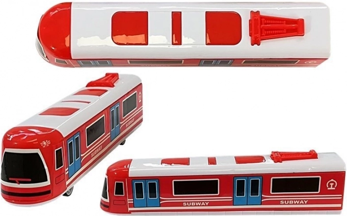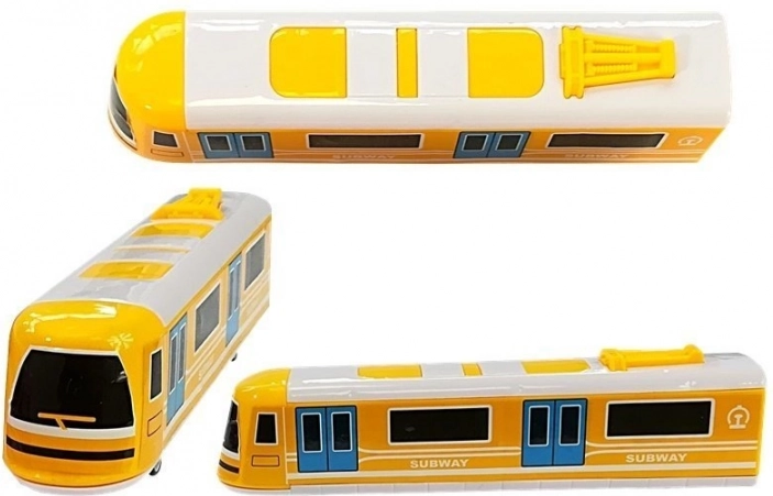 Žuti i crveni vagon podzemne željeznice s realističnim prozorima i natpisom SUBWAY obogatit će svaku dječju željeznicu.