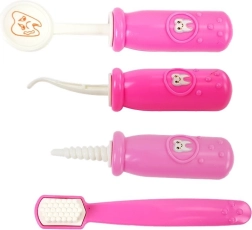 Ovaj bogato opremljen set za igru zubara pomaže djeci razumjeti osnove zdravstvene skrbi i smanjiti strah od posjeta liječniku. Zahvaljujući realističnim, ali sigurnim pomagalima, djeca mogu isprobati pregled, tretman i brigu o zubićima – od “bušenja” do provjere zrcalcem.