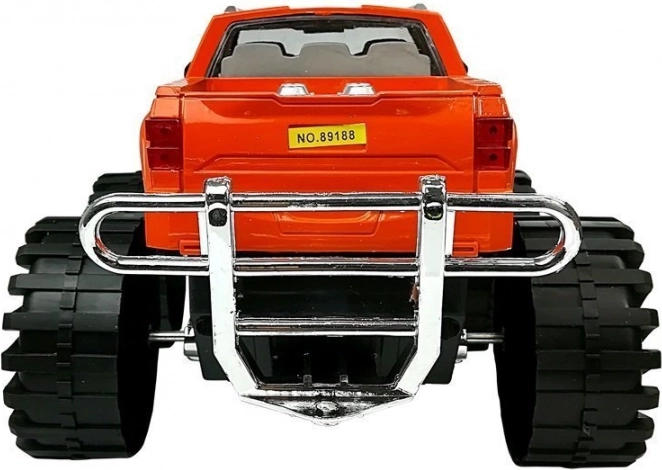 Monster truck lako savladava neravnine, velike gume i povišeno podvozje daju vožnji dozu realističnosti. Auto na prikolici moguće je lako ukrcati i iskrcati, što potiče motoriku i maštu djece. Savršeno kao poklon – pakirano u kutiji s prozirnim prozorčićem.