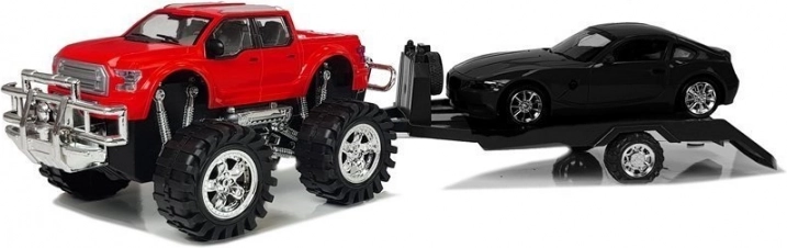 Set vozila crveni monster truck s prikolicom i crni BMW 58 cm