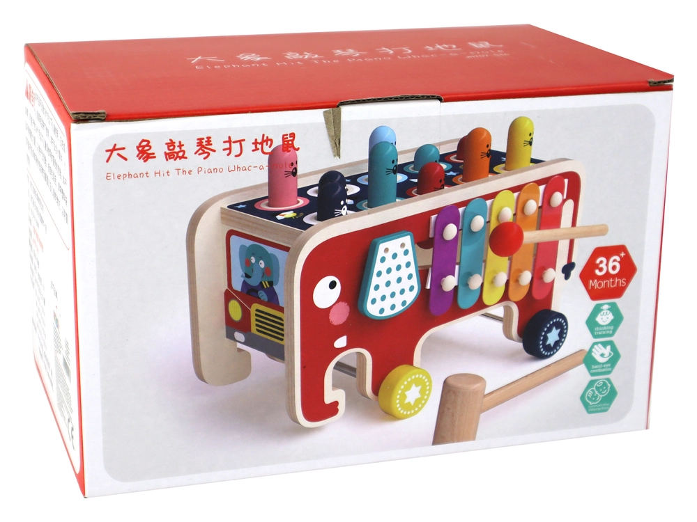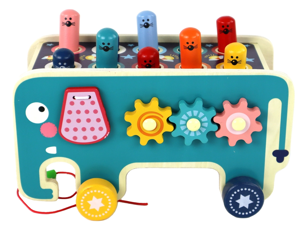 Set se sastoji od drvenog autića s motivom slona, koji privlači pažnju najmlađih igrača. Na krovu auta nalaze se šarene glave krtica koje postaju meta igre "Whac-a-Mole". Djeca ih pokušavaju pogoditi priloženim čekićima, čime razvijaju spretnost i motoričku koordinaciju.