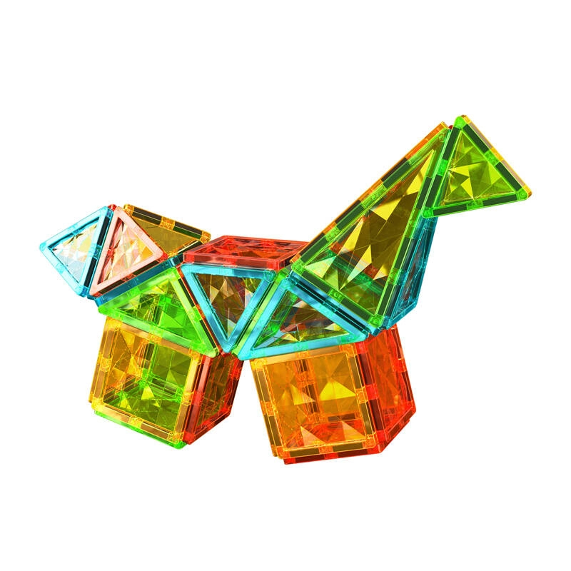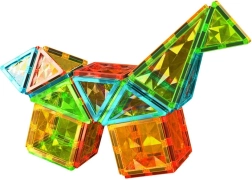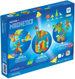 Geomag Gems ne samo da zabavlja djecu, već ih i uči te ih na atraktivan i zanimljiv način uvodi u svijet znanosti i gradnje. Geomag Gems 44 je set magnetskih pločica osmišljen za razvoj kreativnosti, manualne spretnosti i prostorne mašte djece od 3 godine. Šarene pločice u obliku kvadrata i trokuta, ukrašene izraženom sjajnom strukturom, potiču stvaranje konstrukcija punih blještavila. Zahvaljujući jednostavnom spajanju pomoću magneta dijete može graditi prostorne oblike poput tornjeva, kuća ili drugih maštovitih građevina. Igračka potiče razvoj kreativnog razmišljanja i motoričkih vještina te djeci omogućuje prirodno eksperimentiranje s principima geometrije i ravnoteže.