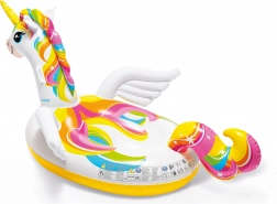 Proživite ljeto punim plućima s ovim udobnim i razigranim napuhujućim otokom u obliku jednoroga od INTEX. Zahvaljujući 2 čvrsta držača, dvjema zračnim komorama i izdržljivom vinilu idealan je za opuštanje i zabavu u bazenu ili na jezeru. Oduševit će velikom nosivošću od 200 kg i praktičnošću – u pakiranju se nalazi zakrpa za popravak.