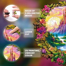 Otkrijte čaroliju slaganja s drvenim puzzlama s motivom čarobne šume. Ovaj set nudi 200 jedinstvenih dijelova od 100% FSC® drva s preciznim laserskim rezanjem i premium kvalitetom. Zahvaljujući UV digitalnom tisku ističu se realistične i živopisne boje koje osiguravaju izvanredan vizualni rezultat. Puzzle razvijaju logičko razmišljanje i finu motoriku te će razveseliti djecu i odrasle.