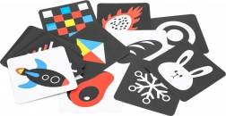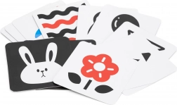 Serija crno-bijelih i crveno-bijelih kartica s jednostavnim oblicima i slikama prirodno privlači djetetov pogled. Podržava fiksaciju, praćenje objekta i ranu vizualnu percepciju – idealno za novorođenčad i mlađe dojenčad.