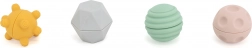 Lagane, teksturirane igračke s različitim površinama i oblicima stimuliraju dodir, masiraju dlanove i prstiće te jačaju hvat. Prikladno za finu motoriku i prva vježbanja koordinacije ruka–oko.